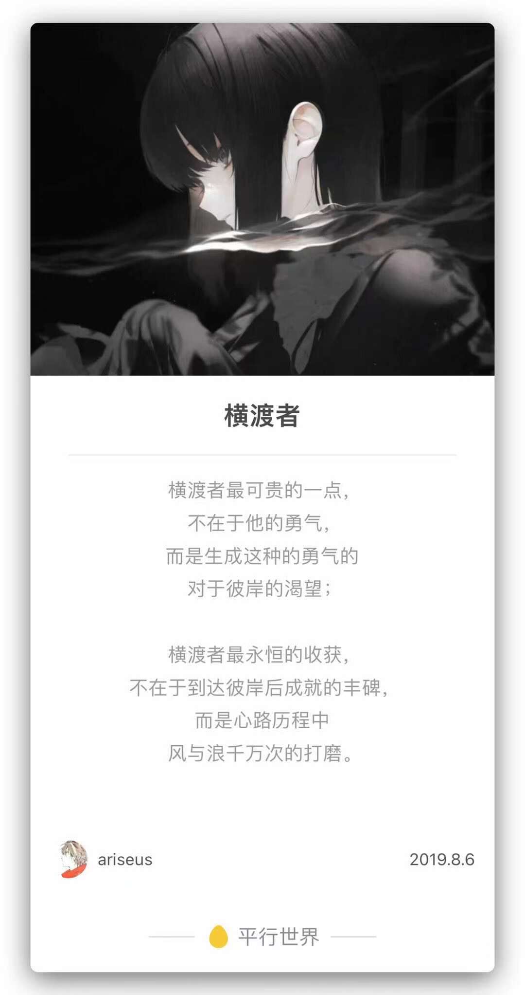 横渡者最可贵的一点,不在于他的勇气,而是生成这种的勇气的对于彼岸的渴望;