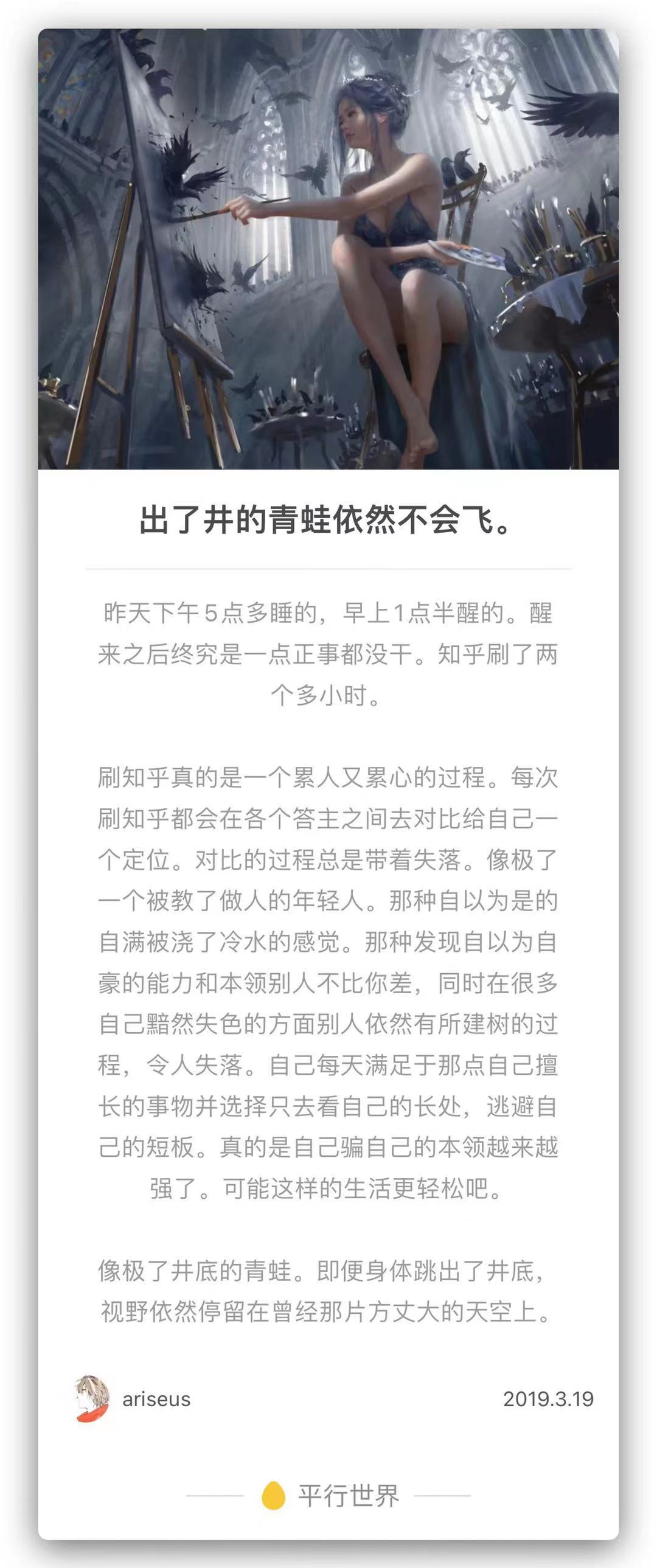 像极了井底的青蛙。即便身体跳出了井底,视野依然停留在曾经那片方丈大的天空上。